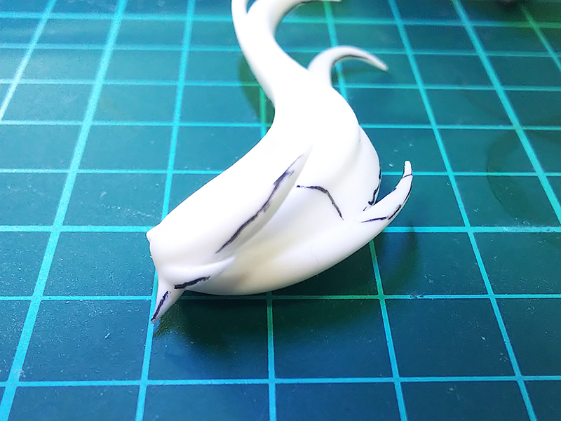 パーティングラインがどう走っているかをマジックで線を引いてみると大体のパーツの埋まり方が見えてきて、自分が埋める時の参考になる。中にはどうしてもどっち向きに埋まっていたか分からんものもあったりする。入れ子のような気もするけど、その跡もないし。。。的な。