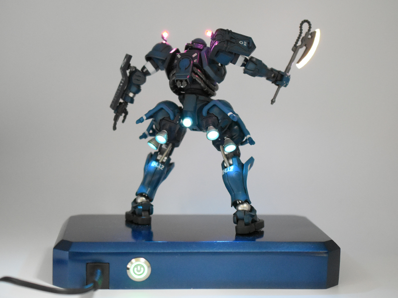 ガンプラでは台座を使わずに展示したいという事も多そうな気がするけど、HGサイズの模型内部に基板丸ごとを仕込むのは物理的な大きさで難しそう。