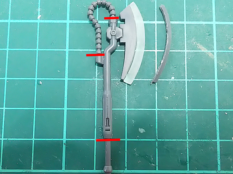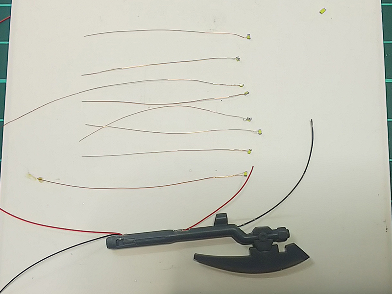 ヒートホークのLED埋め込みが出来たら、右腕の配線経路を作る必要があるので加工していく。