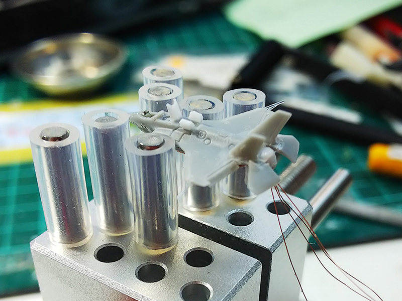 今回はホバリング状態を再現したかったので、雰囲気が出る程度に機体もちょっとだけ改造する。