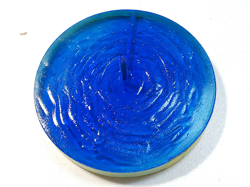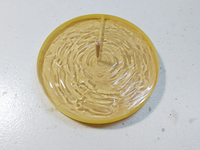 アクリル面にはリキテックスのスーパーヘビージェルメディウムを爪楊枝で円を描くように塗って、少しずつ波紋のような波に見えるように盛り上げていく。