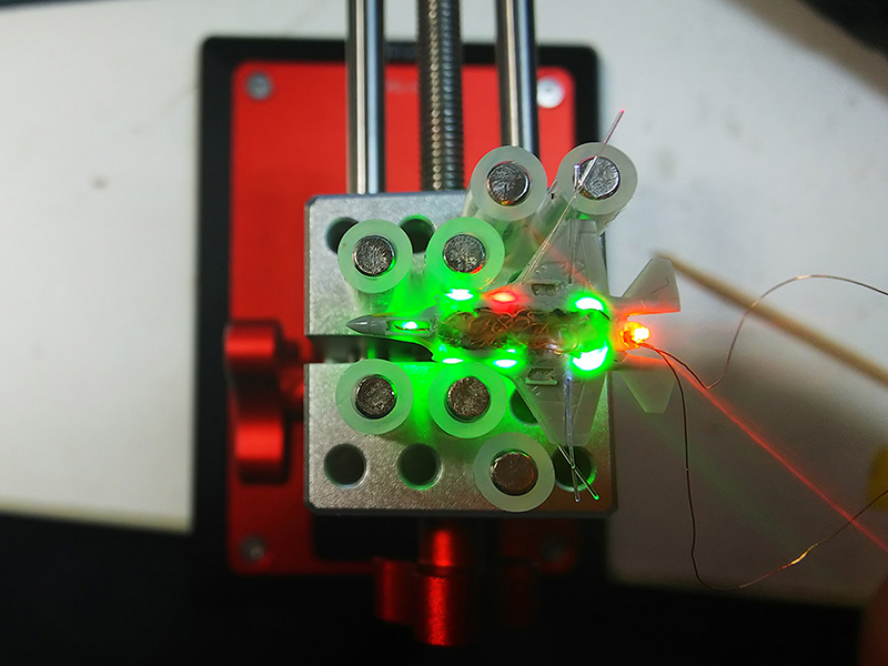 画像はコクピットを光らせる用のLEDと機体内部に埋め込むマイコンを配置してみたイメージ。