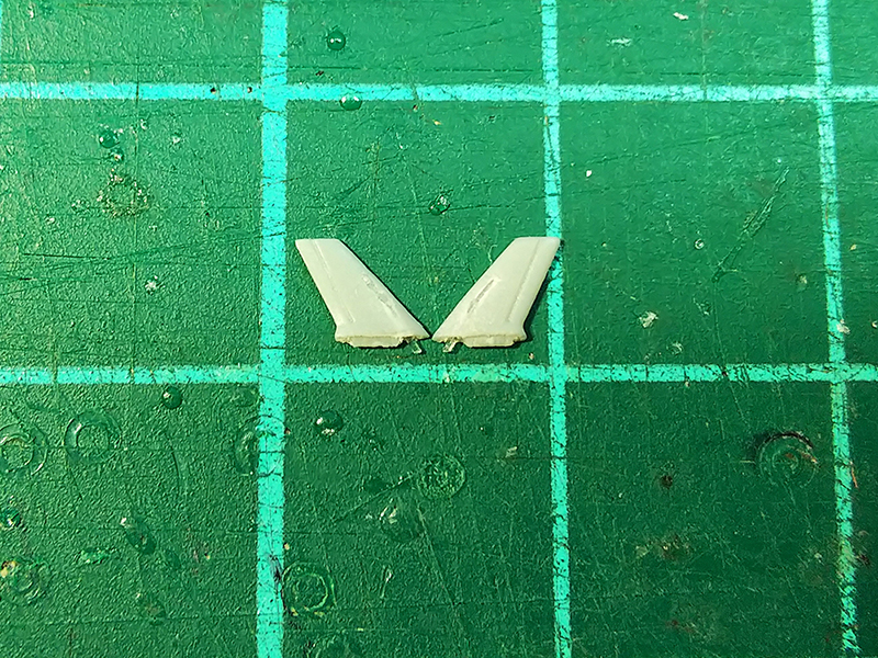 先ずは、垂直尾翼にφ0.3mmの穴を開けつつ、光らせる外側はタガネでスジ彫り加工する。