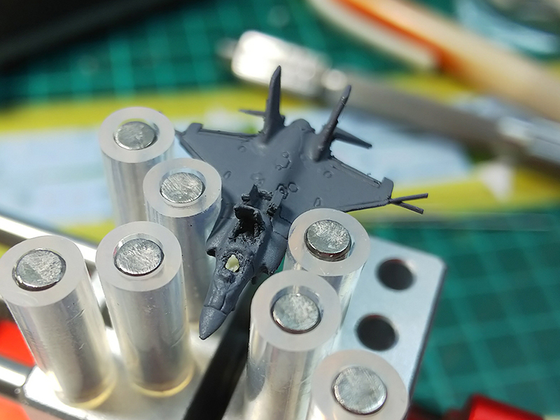 まずは、LED諸々を埋め込む為に機体を掘る。とにかく掘る。